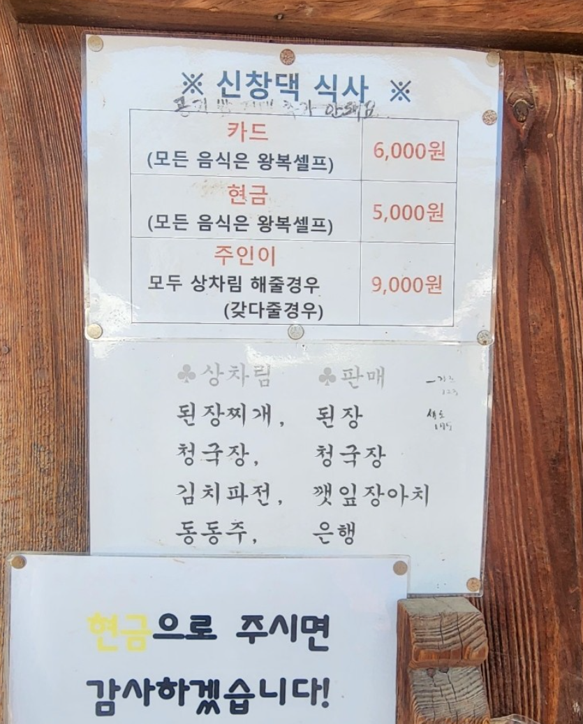 ✅ 2. 시골밥상 메뉴와 가격 (현금 기준)