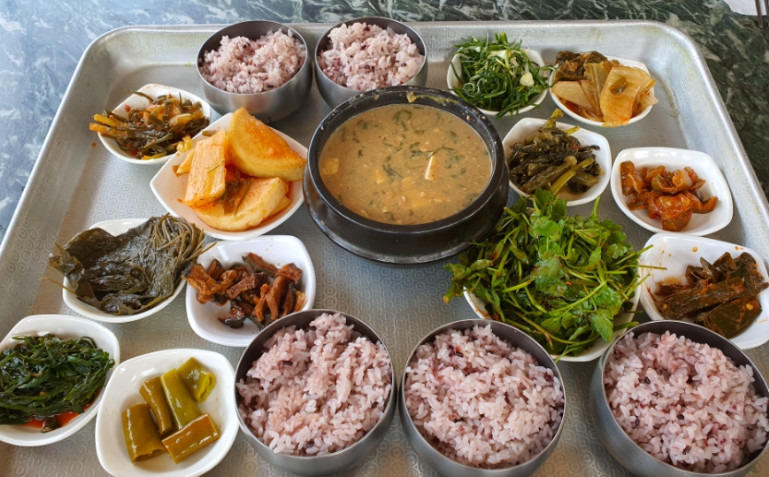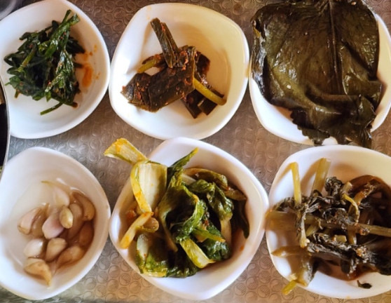 가격은 단출하지만, 반찬은 직접 담근 열두 가지 반찬이 기본 세팅됩니다. 봄엔 두릅, 여름엔 가지나물, 가을엔 더덕 무침 등 계절마다 다른 나물 반찬이 올라오며, 청국장과 된장찌개는 매일 끓여내는 진한 맛 그대로 제공됩니다.