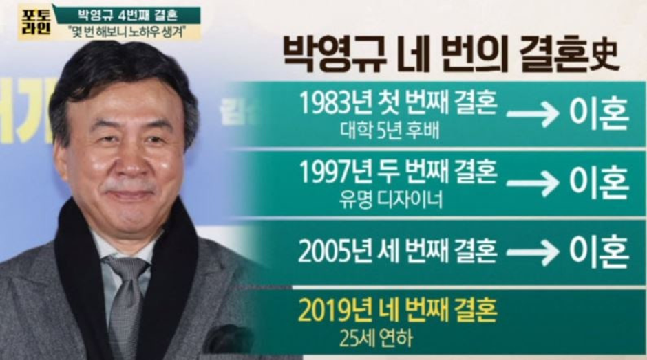 * 김수륜은 박영규의 세 번째 부인으로, 현재는 이혼한 상태다.