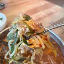 기본 닭개장도 충분히 얼큰하지만 더 매운 걸 원하시면 청양고추 추가 요청하세요. 무료로 추가해주시고 취향에 맞게 매운맛을 조절할 수 있어요.