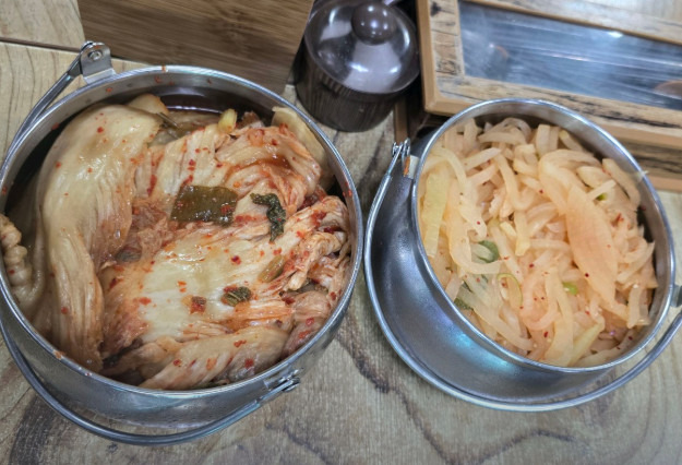 백김치, 무생채 등 반찬은 셀프바에서 무제한으로 가져다 드실 수 있어요. 닭개장과 궁합이 좋으니 적당히 곁들여 드시면 더욱 맛있습니다.