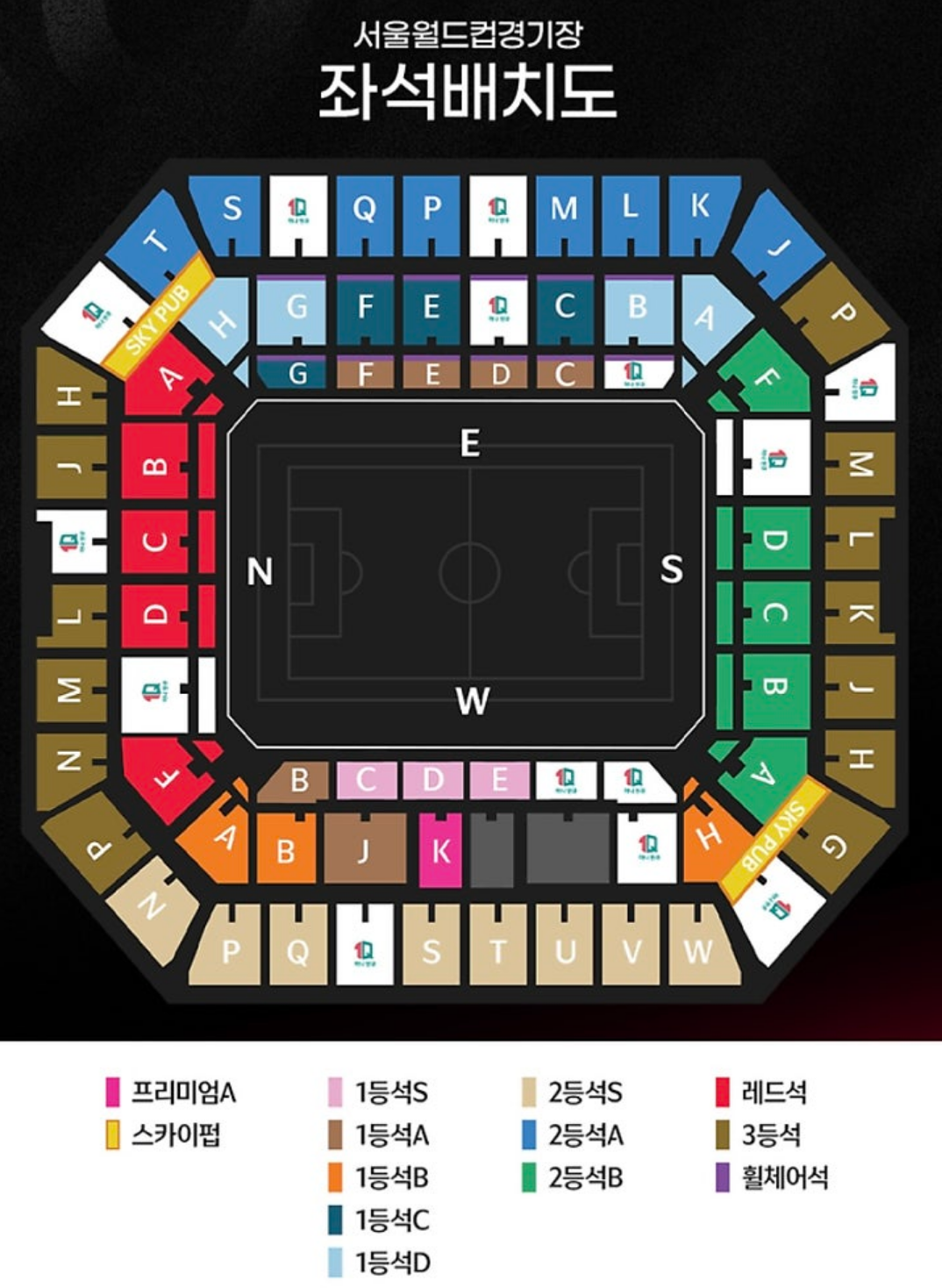 - 프리미엄 A~C석: 메인 스탠드 중앙부, 선수 벤치 정면, 최고의 시야각