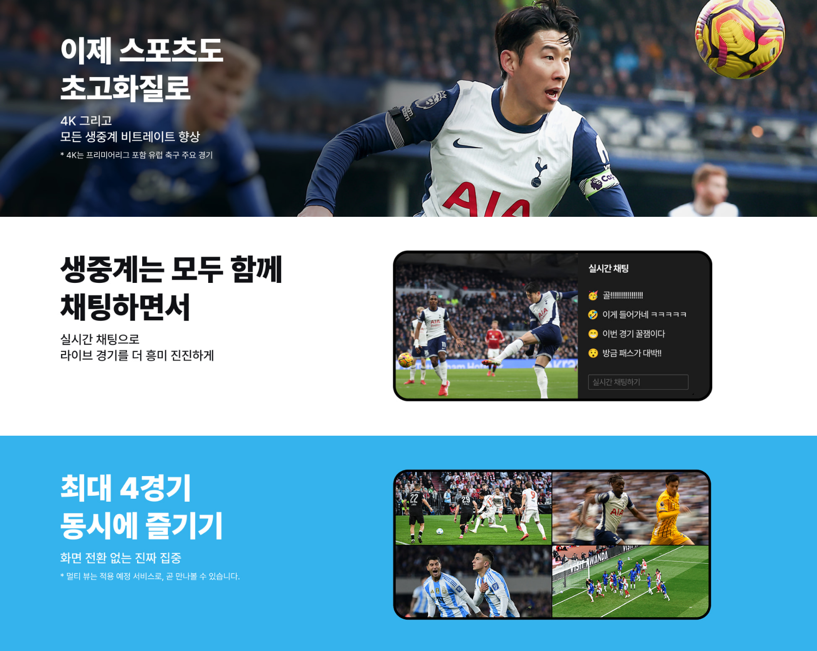 | 프리미어리그 시청 | ❌ | ❌ | ✅ 전 경기 무제한 |