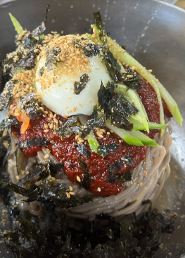 • 푸짐한 고명: 면 위에 소스장, 오이채, 무절임, 삶은 달걀, 깨, 김가루 등 고명이 푸짐하게 올라감