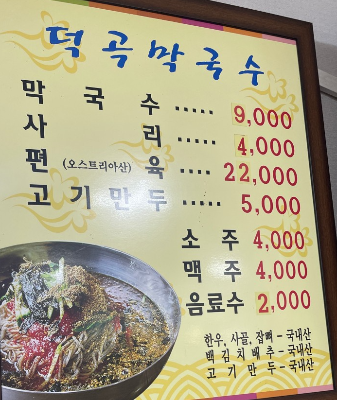 막국수 9,000원