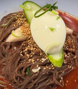 • 물-비빔 겸용 스타일: 주문 시 육수를 따로 제공해 취향에 따라 비빔 또는 물막국수로 즐길 수 있음