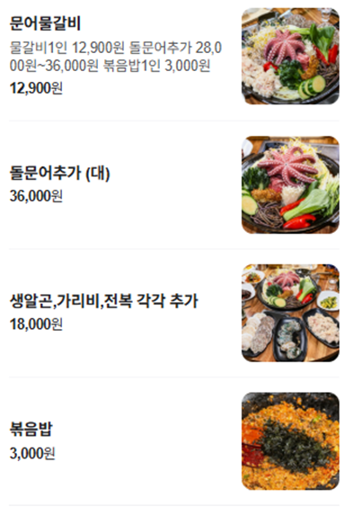 🍲문어물갈비 대구본점 메뉴표 및 가격