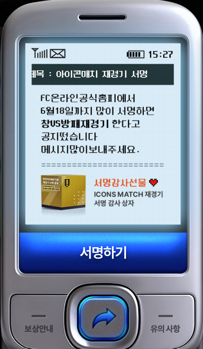 | 서명 방법 | 넥슨 공식 아이콘 매치 서명 페이지 접속 후 참여 |
