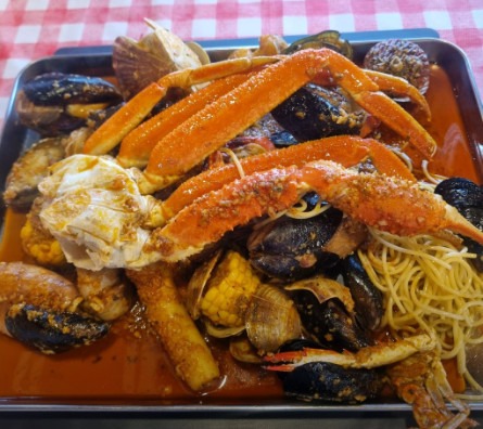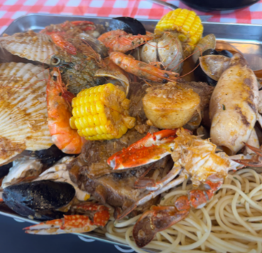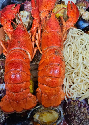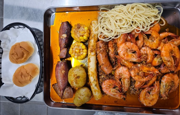 👉 이색적이고 푸짐한 구성: 비닐봉지에 담긴 해산물을 테이블 위에 펼쳐놓고 먹는 미국식 식사 방식이 신선하고, 단체나 가족, 친구 모임에 적합합니다. 해산물 외에도 파스타, 볶음밥 등 다양한 메뉴와 함께 즐길 수 있습니다