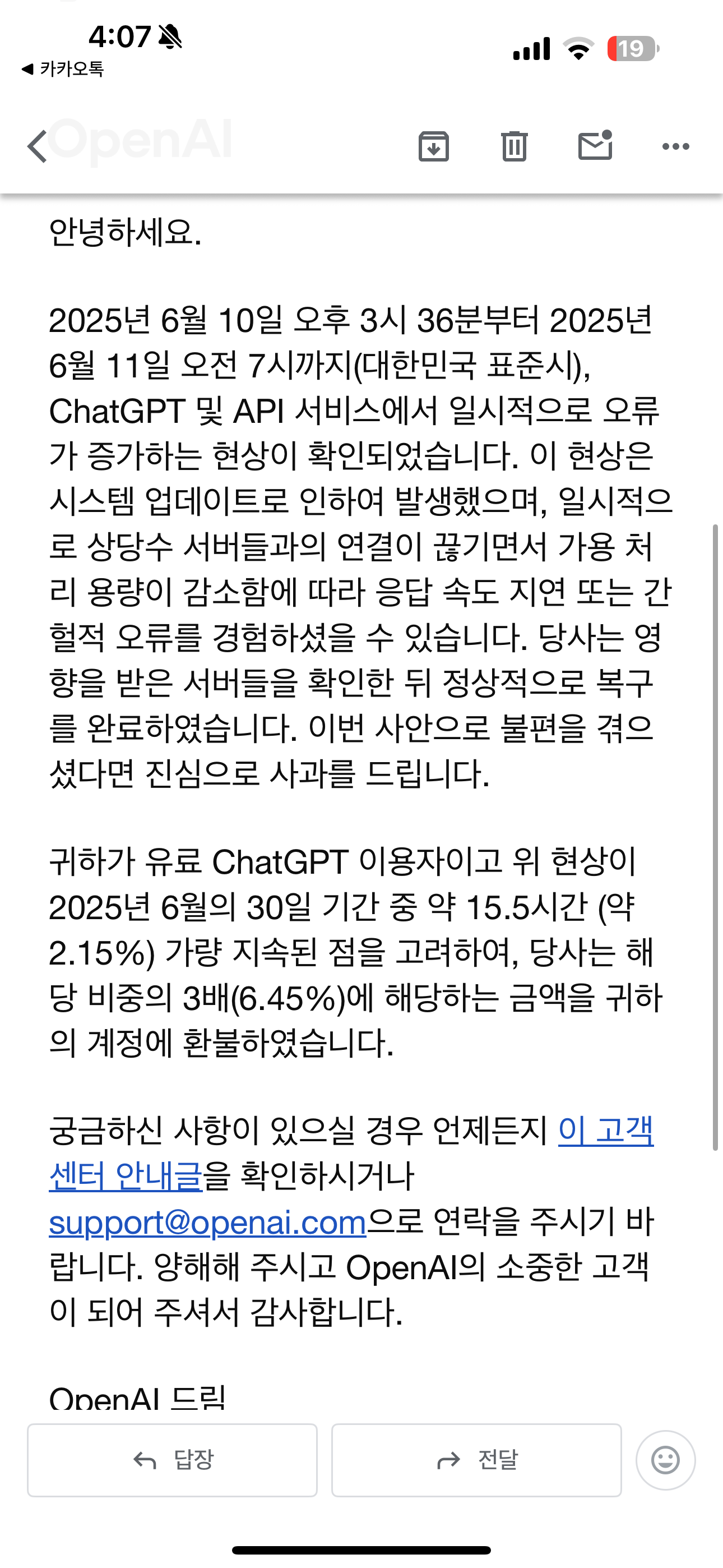 💡 6월 10일 ChatGPT 서비스 장애 보상 안내 총정리